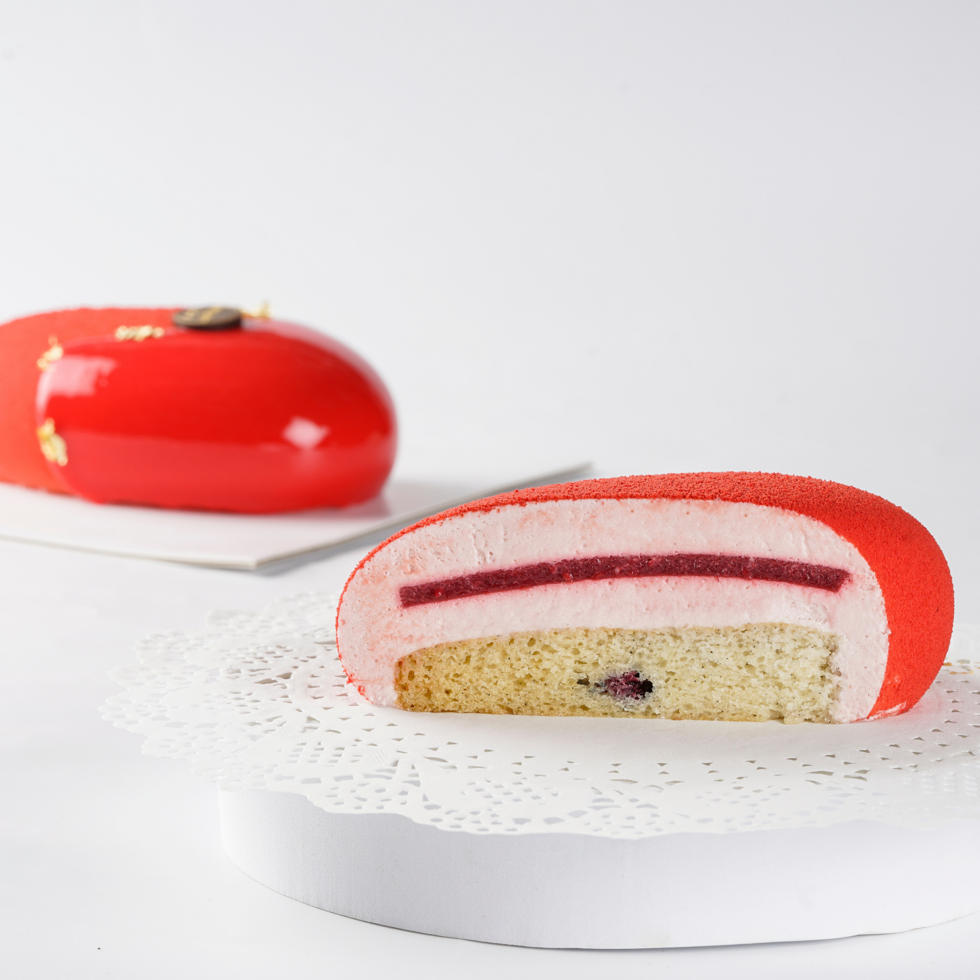 Vanilla Sponge : A classic vanilla sponge providing a neutral base for the berry flavors to shine.